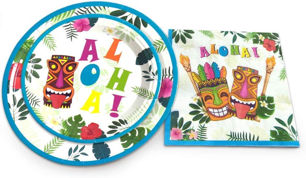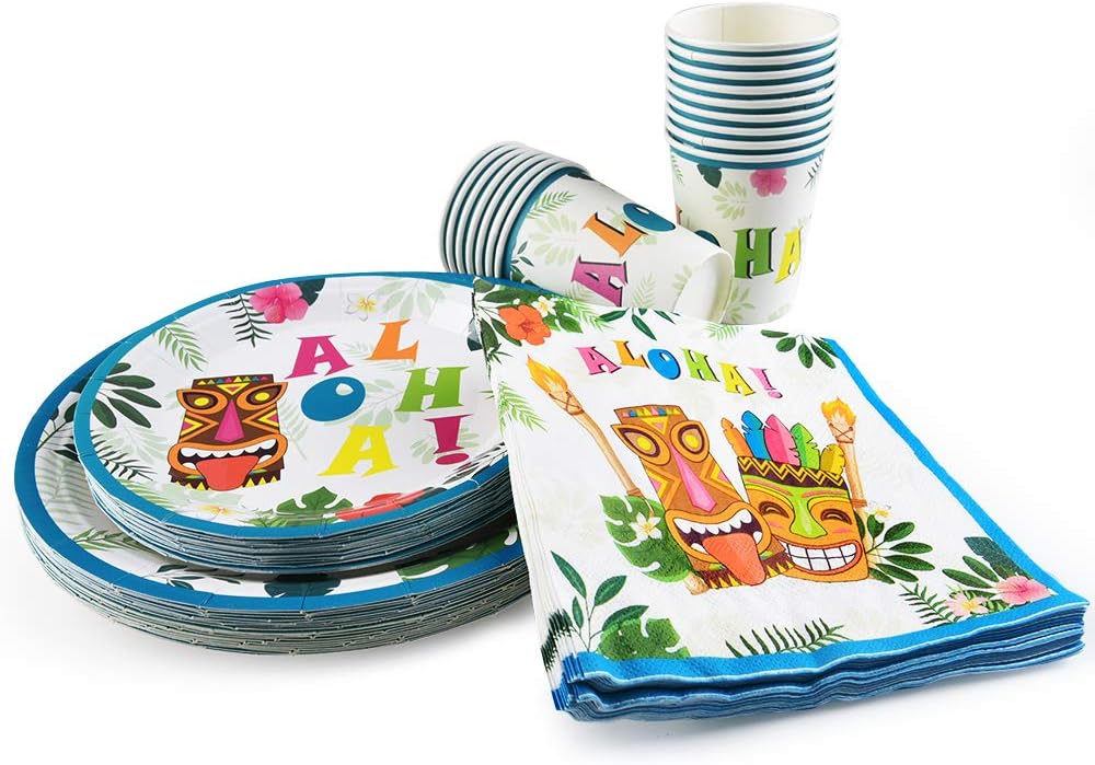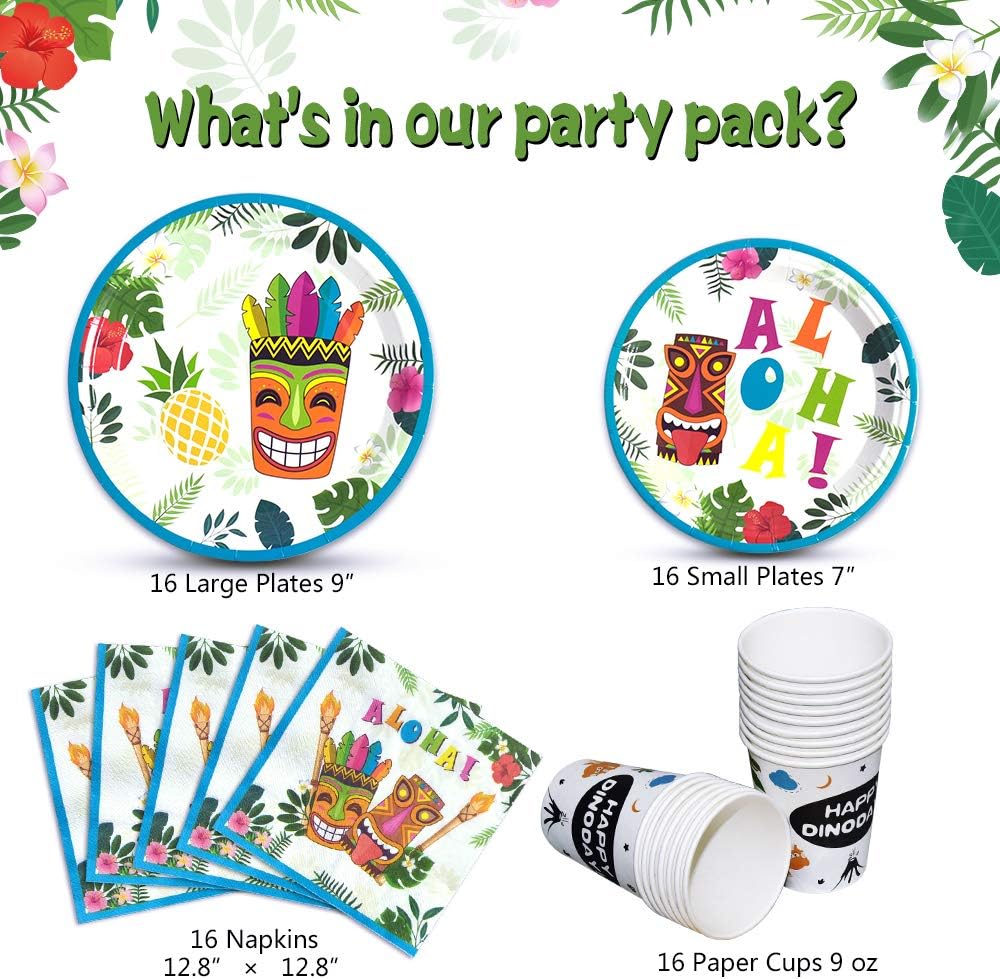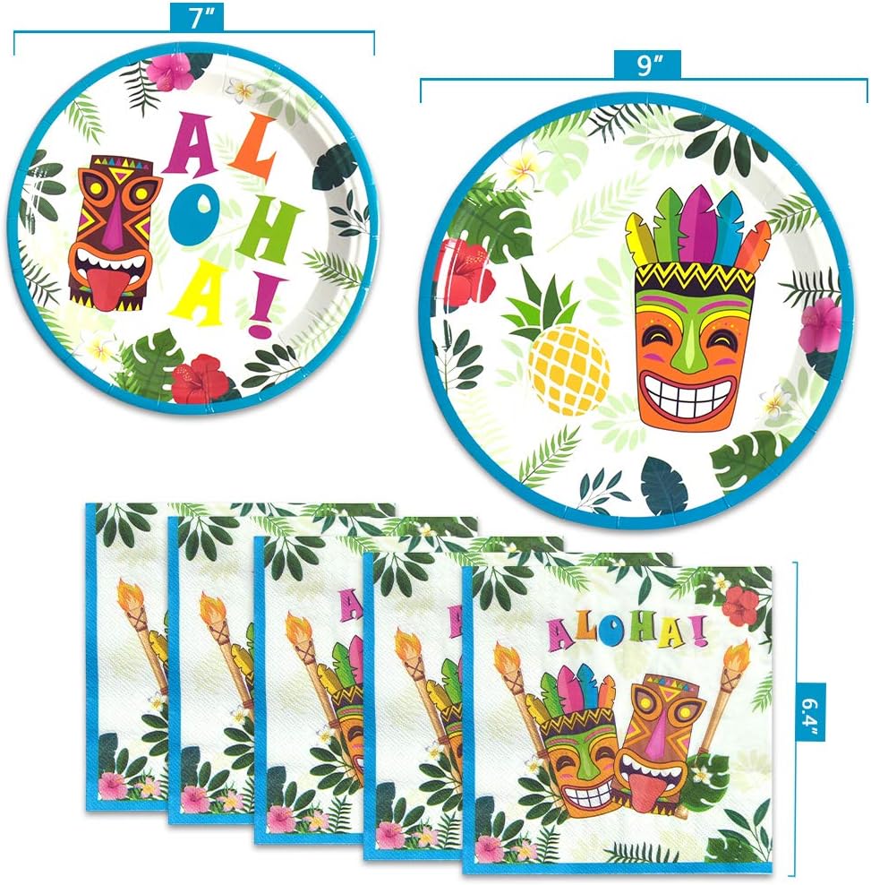 WERNNSAI Hawaiian Aloha Party Tableware Set Luau Tropical Tiki Summer Pool Party Supplies for Birthday Disposable Dinner Dessert Plates Luncheon Napkins Paper Cups Serves 16 Guests 64PCS