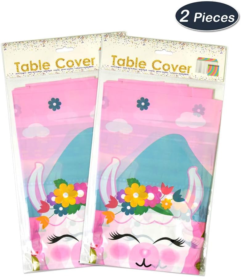 WERNNSAI Llama Table Cover 2 PCS 54” x 108” Party Disposable Plastic Tablecloth, Alpaca Lama Party Supplies for Kid Girl Pink Picnic Birthday Party Decorations