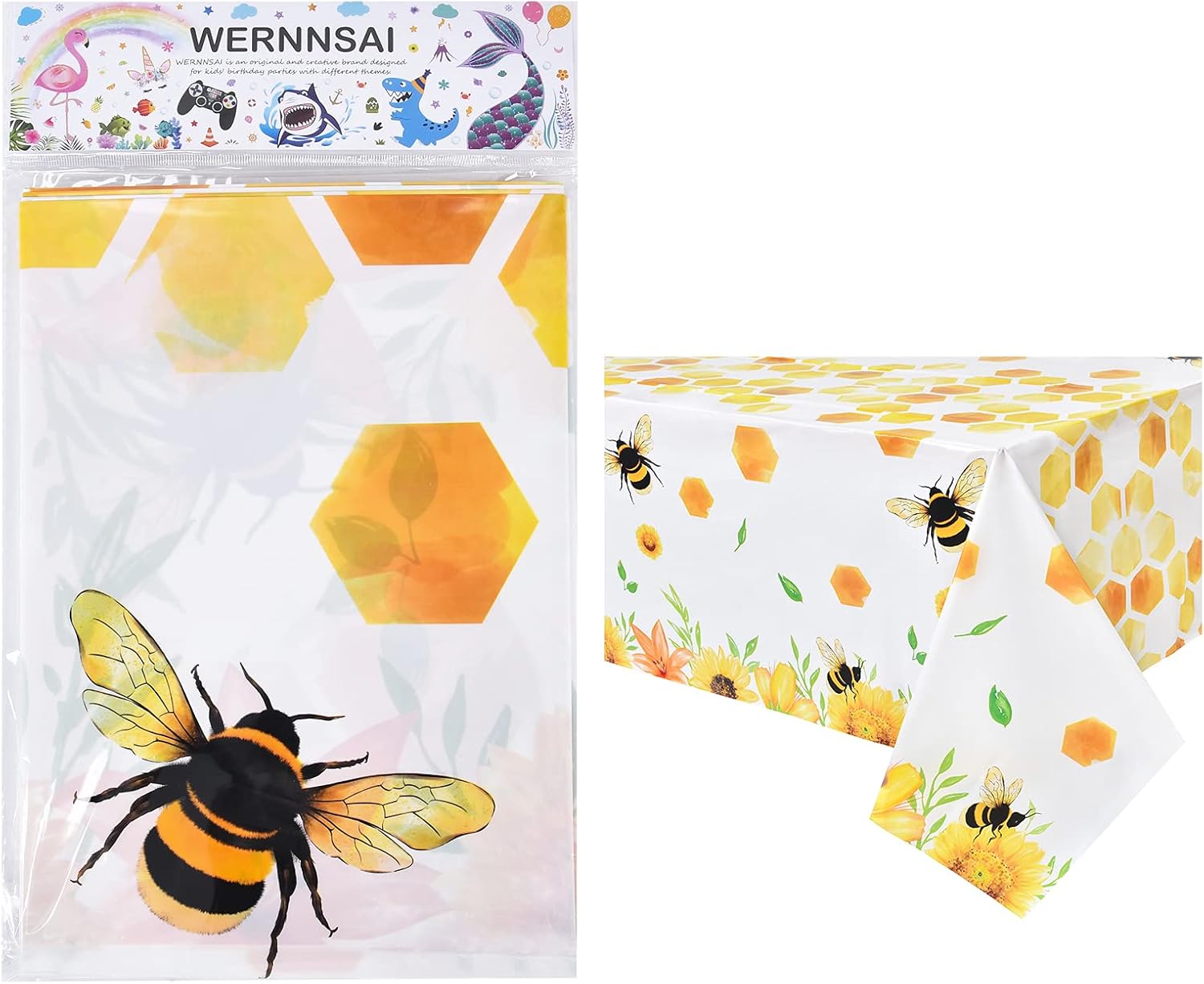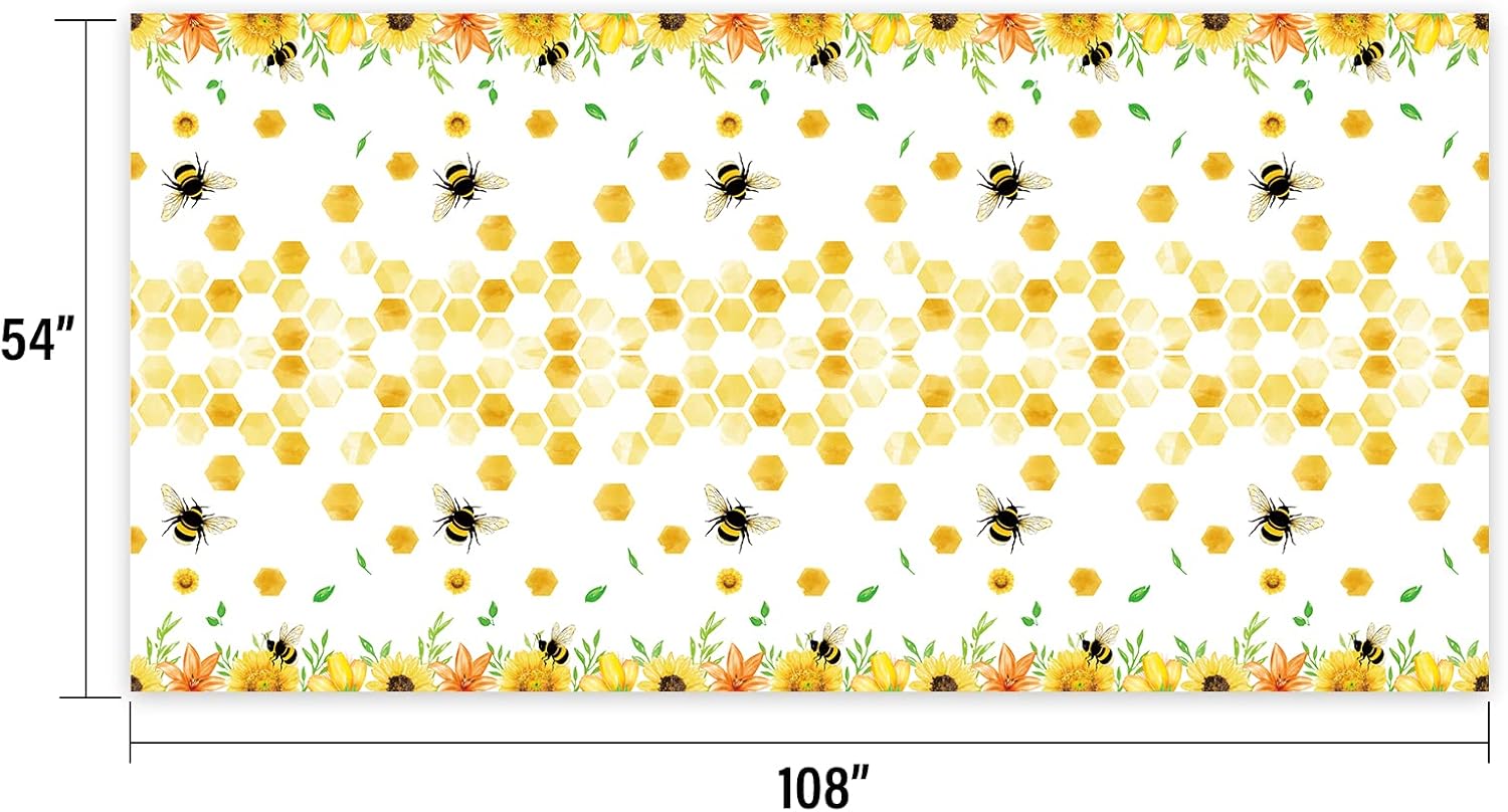 🐝 - Package include 1 x bee tablecloth, Length 108 inches x Width 54 inches. Large enough for party use.
