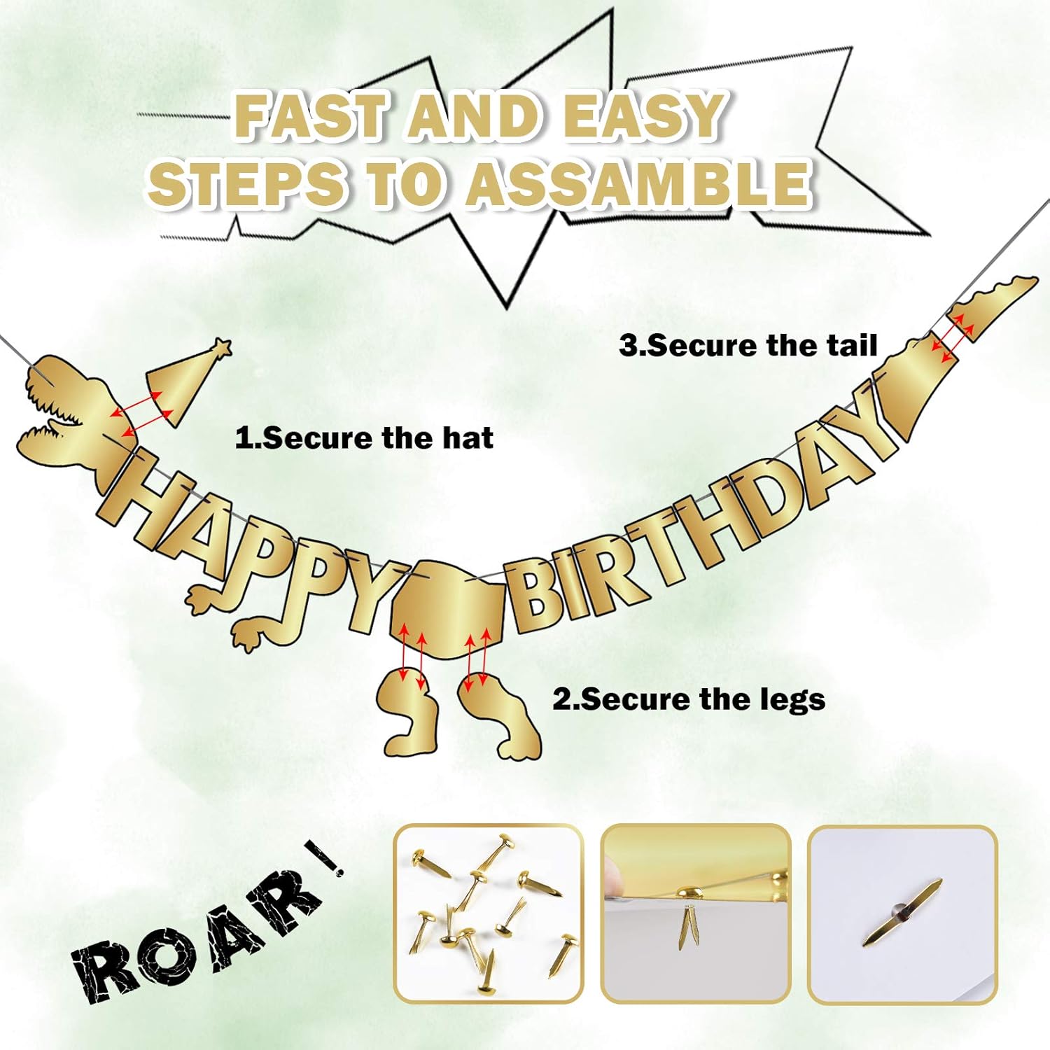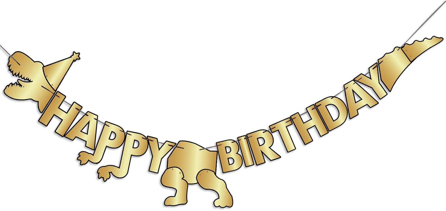 Must you think that the dinosaur is a distant animal, right? Most boys have the dream of making friends with dinosaurs and exploring their world. Here is your cutest solution--a gold dinasour happy birthday banner for you