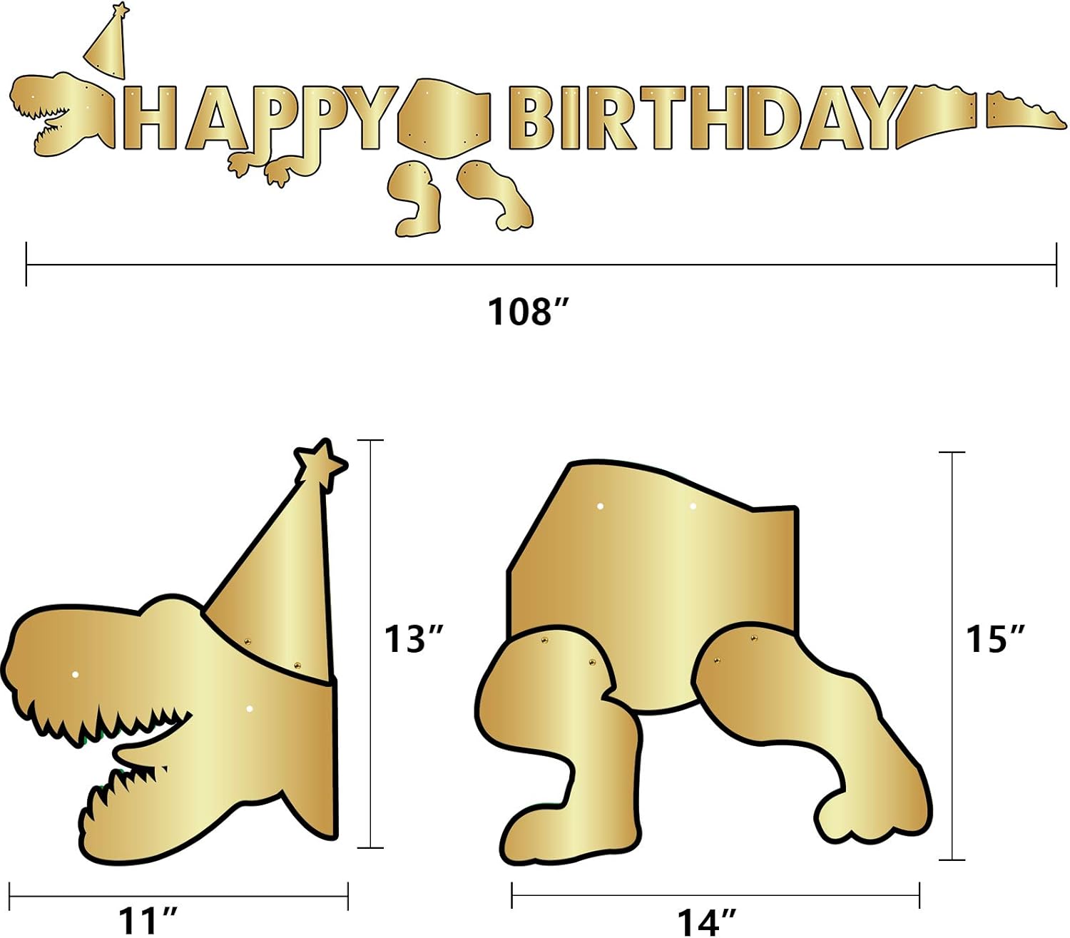Gold Dinosaur Birthday Party Banner Dinosaur Birthday Party Decorations for Boys Kids Dino Theme Party Supplies Pre-Assembled T-Rex Happy Birthday Banner Wall Hanging Decor – WERNNSAI