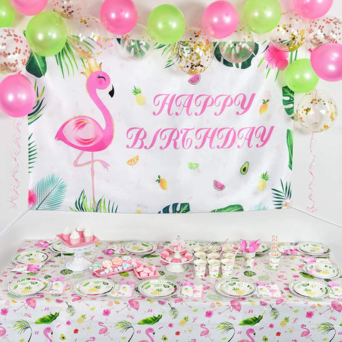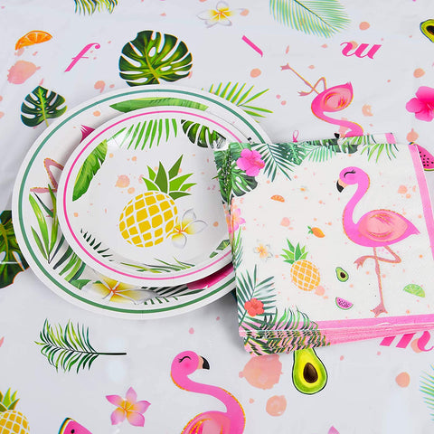 🌴 EXQUISITE DESIGN - Pink flamingo with green palm leaves and pineapple, get the party package, start your sweet summer party! Exquisite and originally designed by ourselves.